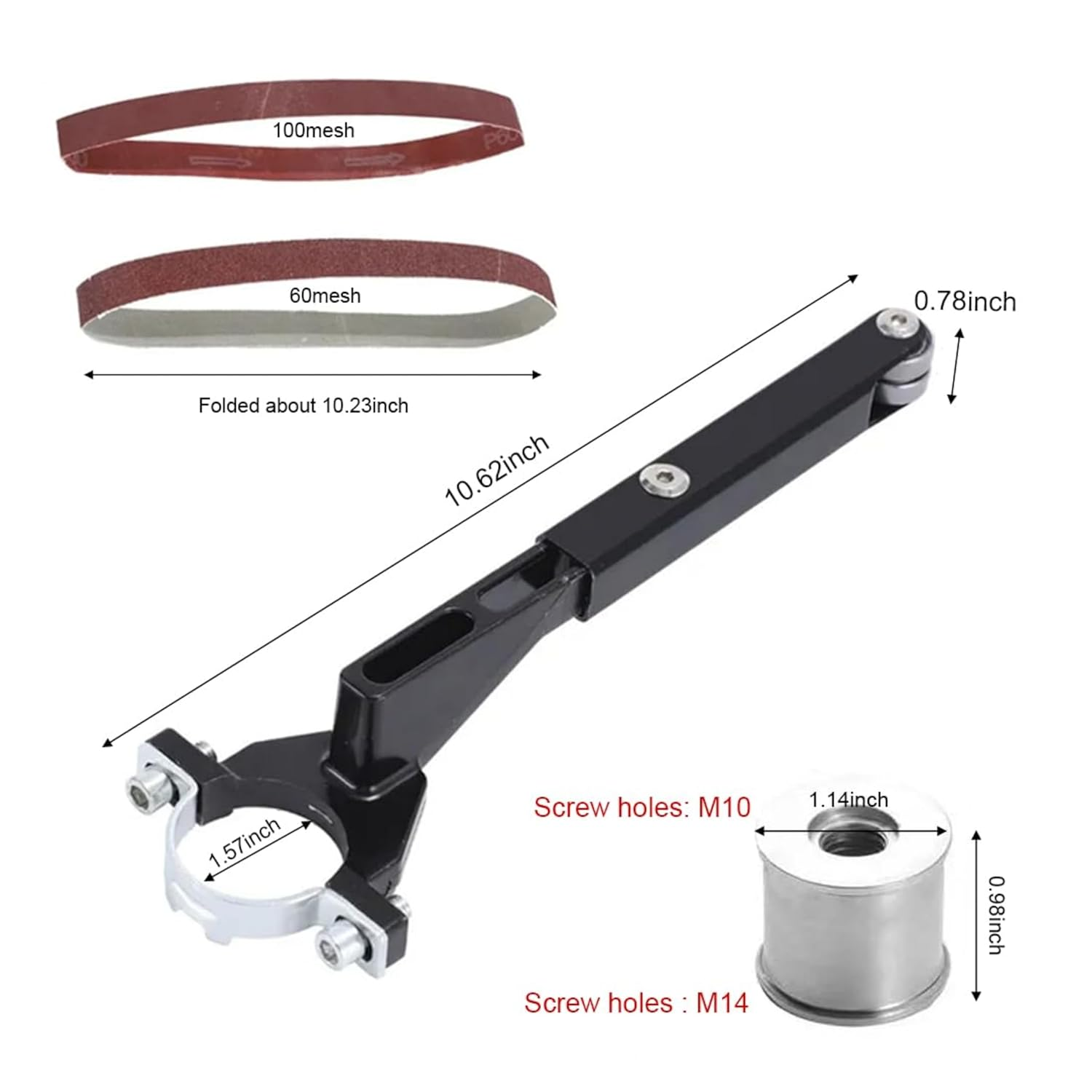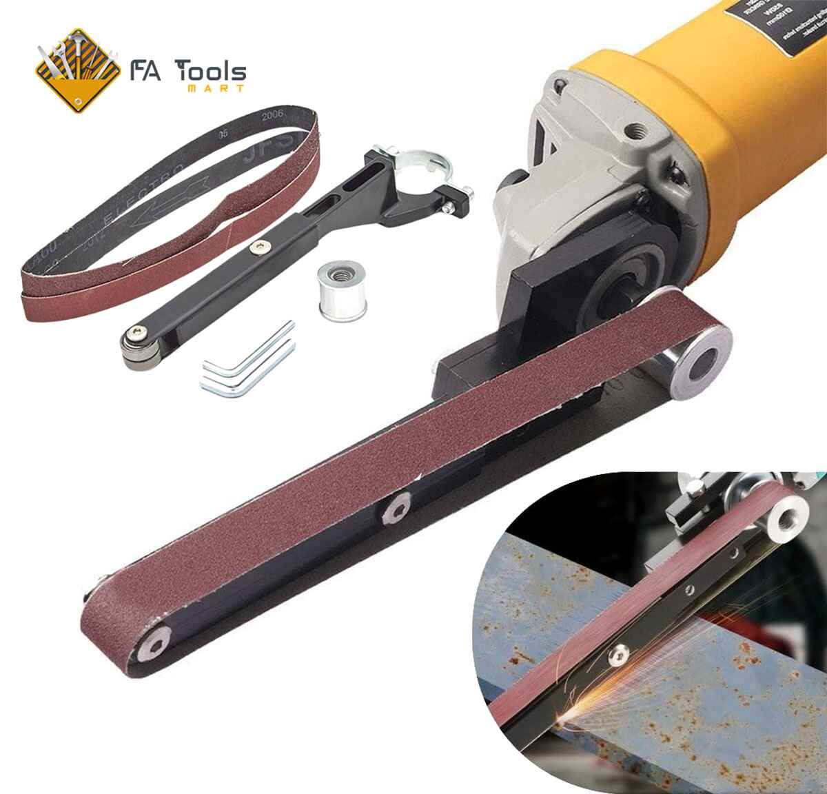 Transform your standard angle grinder into a versatile electric belt sander with this high-performance belt sander Attachment. Designed for Model 100 grinders, this modified sand belt machine is ideal for polishing, deburring, shaping, and finishing metal, wood, or pipe surfaces.
