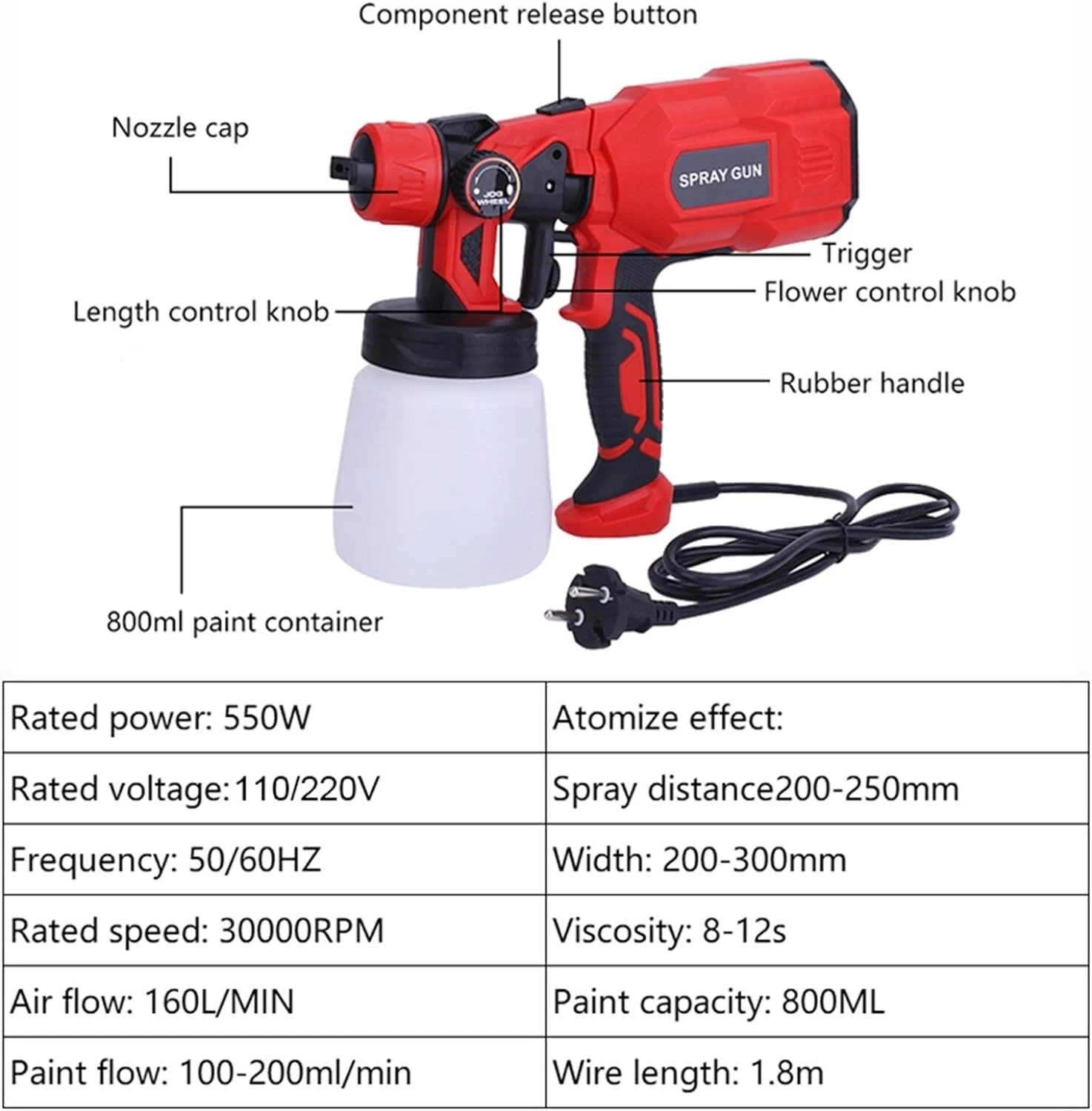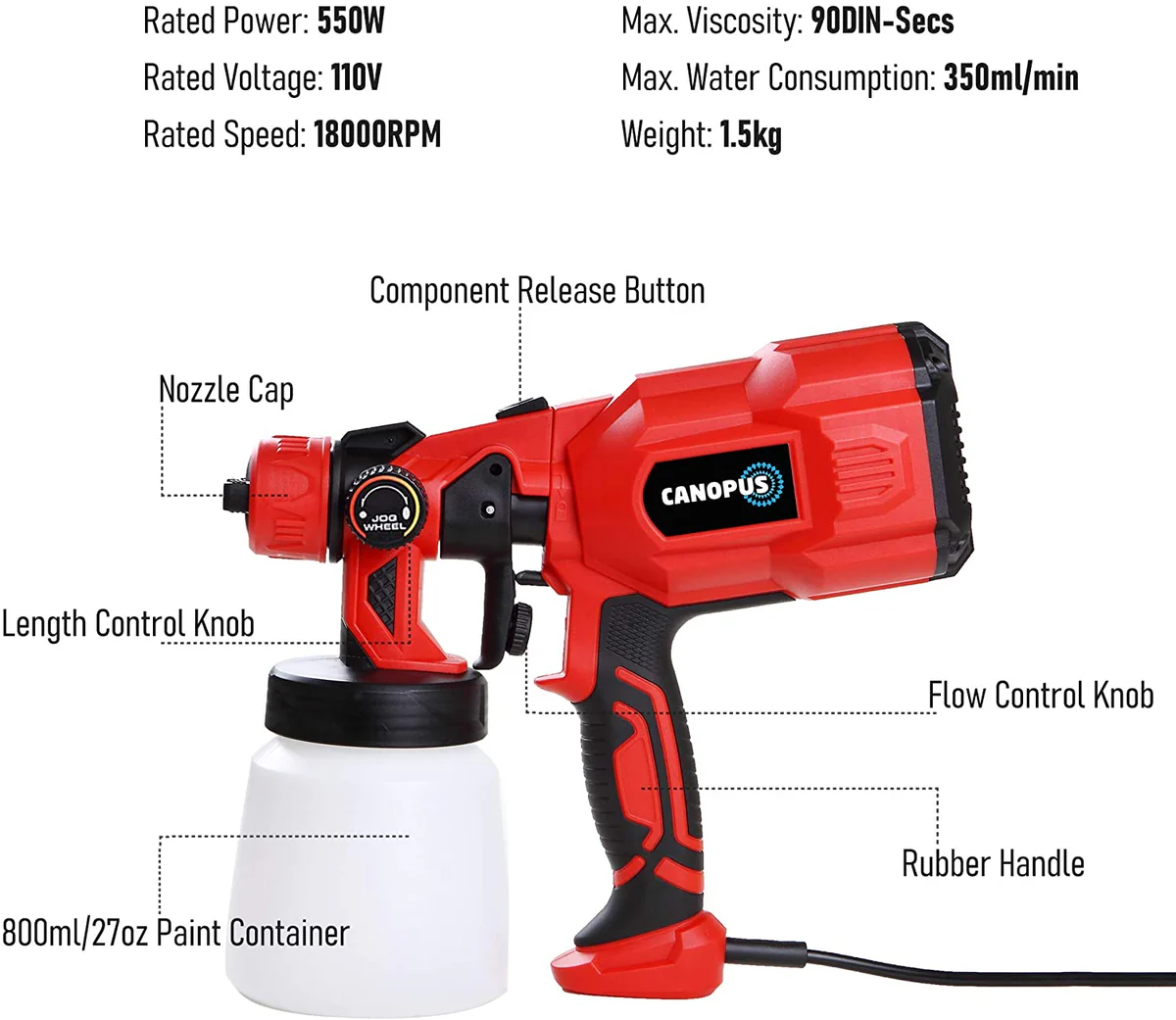 • 550W High-Power Motor – Delivers strong and stable spray performance