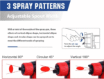 • 3 Adjustable Spray Patterns – Horizontal, vertical, and circular